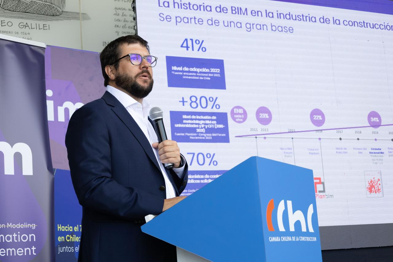 Durante la jornada, Rodrigo Sánchez, Líder de la Aceleradora BIM de la Cámara Chilena de la Construcción (CChC), agradeció a las organizaciones que han estado trabajando durante todo el año, coordinadamente y priorizando esfuerzos e iniciativas con un fin común de poder acelerar la adopción de la metodología BIM, para poder así, mejorar la productividad de la industria.