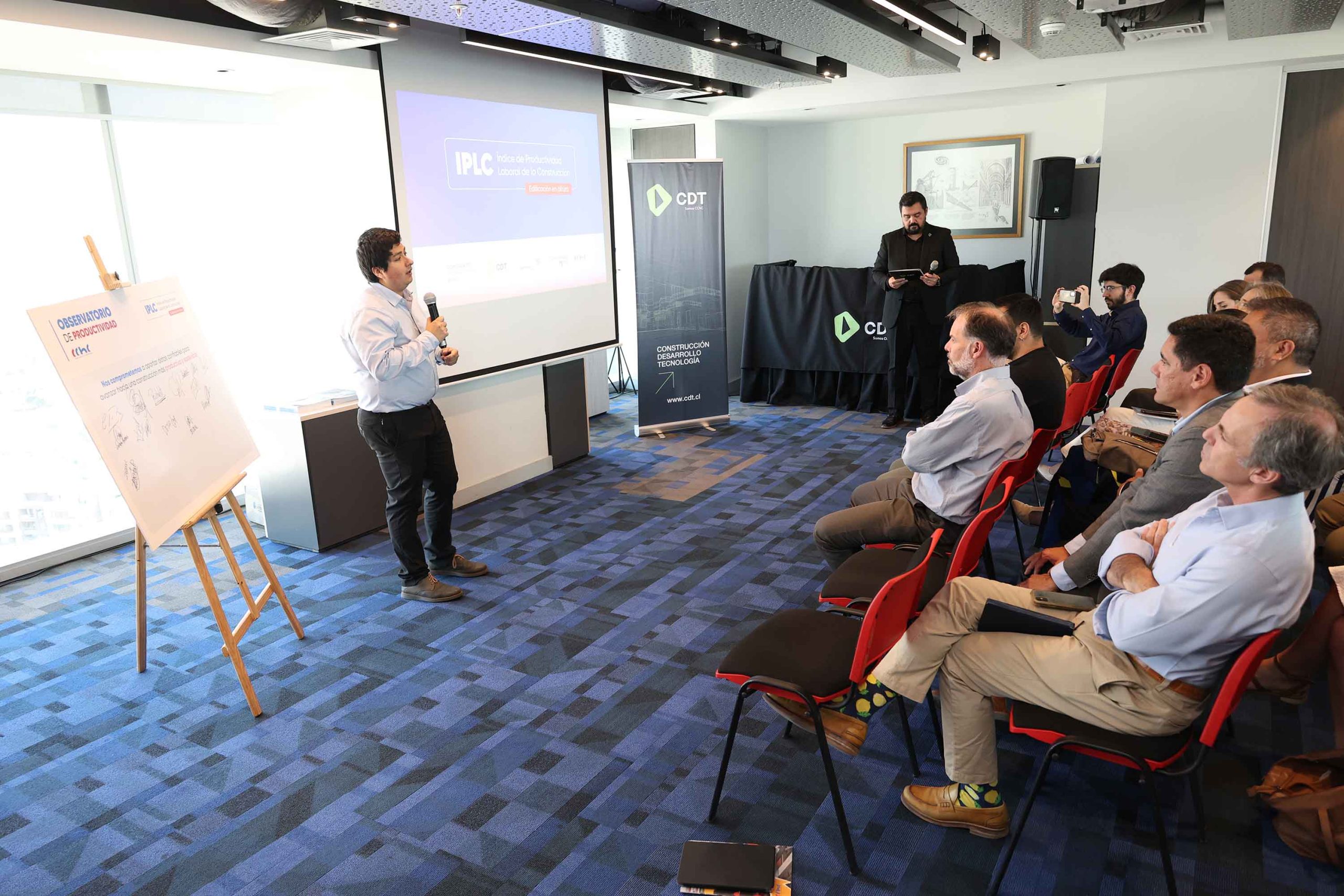 La CDT fue el escenario de la presentación oficial del Índice de Productividad Laboral de la Construcción (IPLC) 2025, un estudio desarrollado por la Cámara Chilena de la Construcción (CChC) y la CDT, en el contexto del Observatorio de Productividad y con el apoyo del programa Construye2025. Entre las principales conclusiones del estudio destacan el aumento del 8% en productividad laboral en 2025 con respecto a 2020, y que las empresas medidas en el estudio de Matrix (2020), y en el IPLC, pasaron de 0,24 a 0,28 m2/persona día, lo que implica un 17% más de productividad.